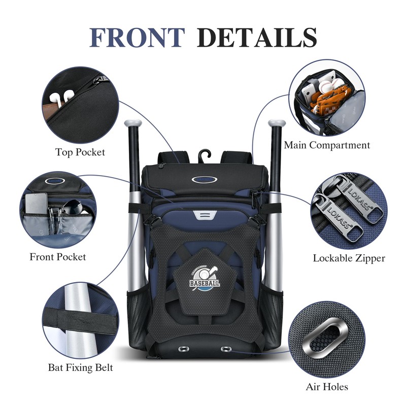 - TONS OF STORAGE: Spacious main compartment for all your baseball gear: a baseball helmet, batting gloves, cleats, baseball cap, and catching glove; front pocket help store your phone, charging battery and keys; 4 side elastic pockets with buckle straps to secure your bats or water bottle.
