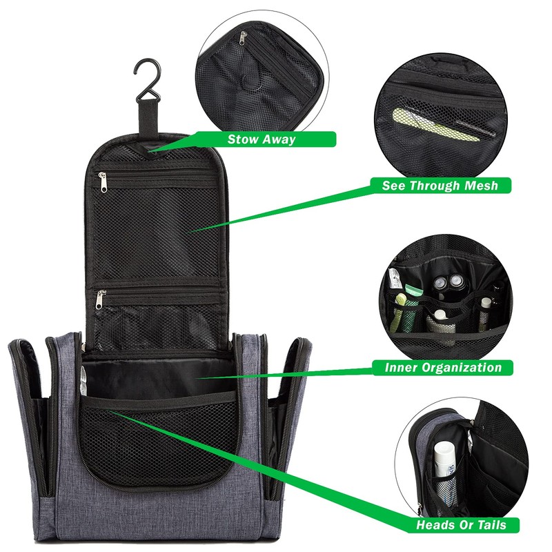 - VERSATILE DESIGN: Our toilet bags for men & women comes in a variety of cool colors and fabrics, and can hold full-size bathroom bottles as well. Running tight on space? No problem. Just hang it anywhere in the bathroom or shower area by the hook