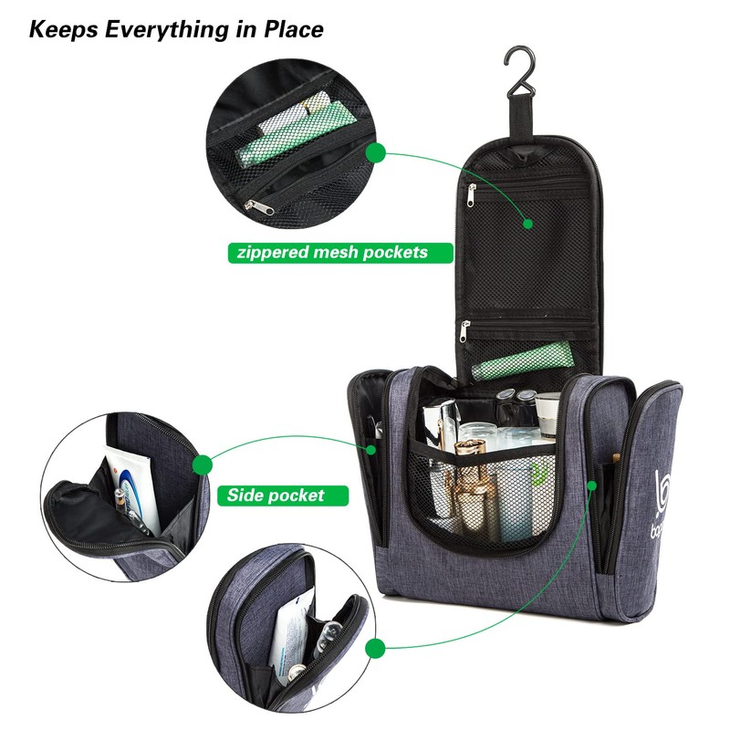 - VERSATILE DESIGN: Our toilet bags for men & women comes in a variety of cool colors and fabrics, and can hold full-size bathroom bottles as well. Running tight on space? No problem. Just hang it anywhere in the bathroom or shower area by the hook