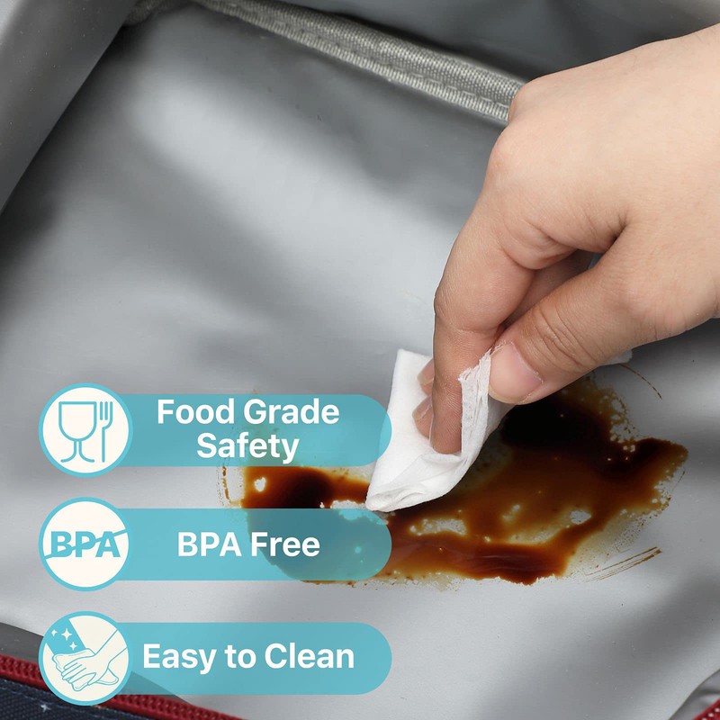 - ❤EXCELLENT LONG-TERM INSULATION❤Enhanced heavy duty material helps retain hot and cold temperatures up 5-6 hours to keep freshness and taste. This lunch bag feaures PEVA food safe interior, healthy, leakproof and easy to wipe and clean.