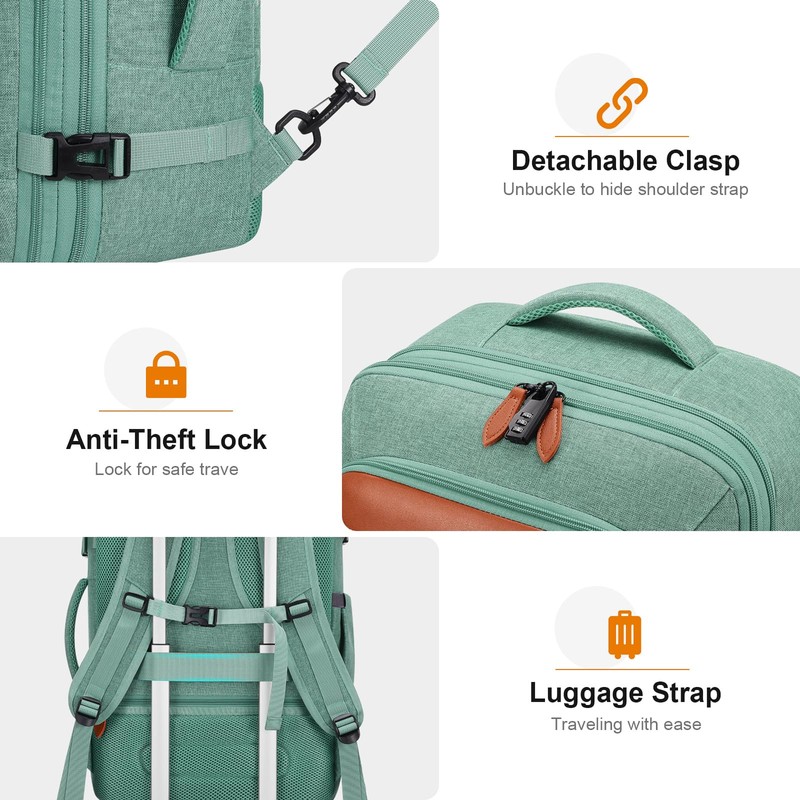 - Flight-Friendly Carry-On Backpack:This backpack is designed for effortless travel, transitioning smoothly from backpack to suitcase with padded handles. The convenient luggage strap allows for easy stacking on suitcases