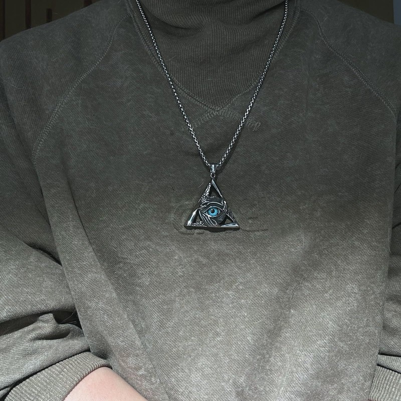 bahamut Mens Skull Evil Eye Necklace for Men Women Amulet Protective Talisman Pendant Gifts Gothic Accessories Jewellery (Blue triangle eye)