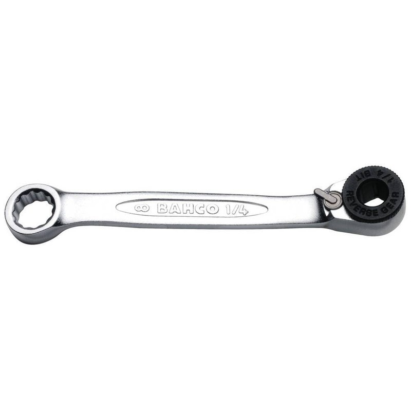 - 1/4 mini bit ratchet, 52 teeth / 7° return angle. With adapter, can also be used for 1/4 socket spanner inserts. Easy to use even with just one hand in confined screw applications. Knurled wheel for fast screwing in tight situations, when there is no space for the ratchet. Low height ideal for all particularly tight installation situations. Twelve point drive. Made from leg. High quality steel chrome Surface SB: Retail packed drive: 1/4 inch DIN 3126-c 6, ISO 1173