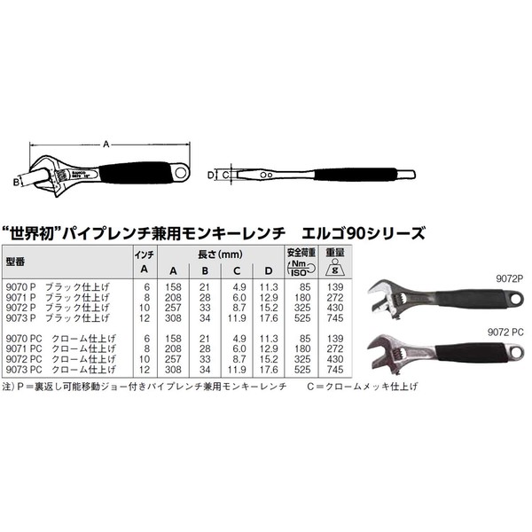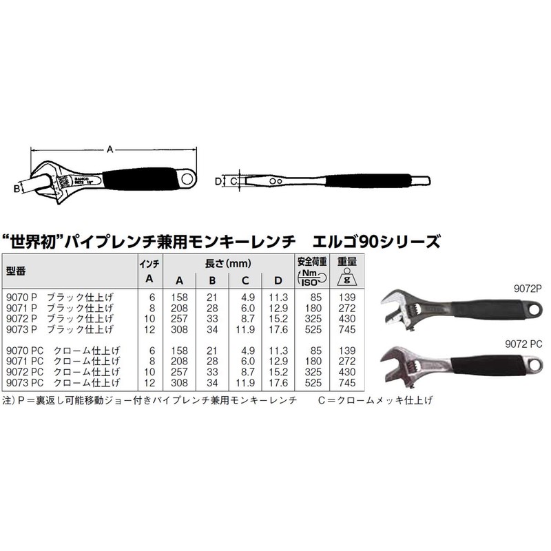 Bahco 9070 PC Ergo Adjustable Wrench, 6"
