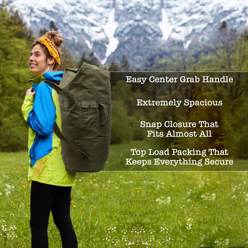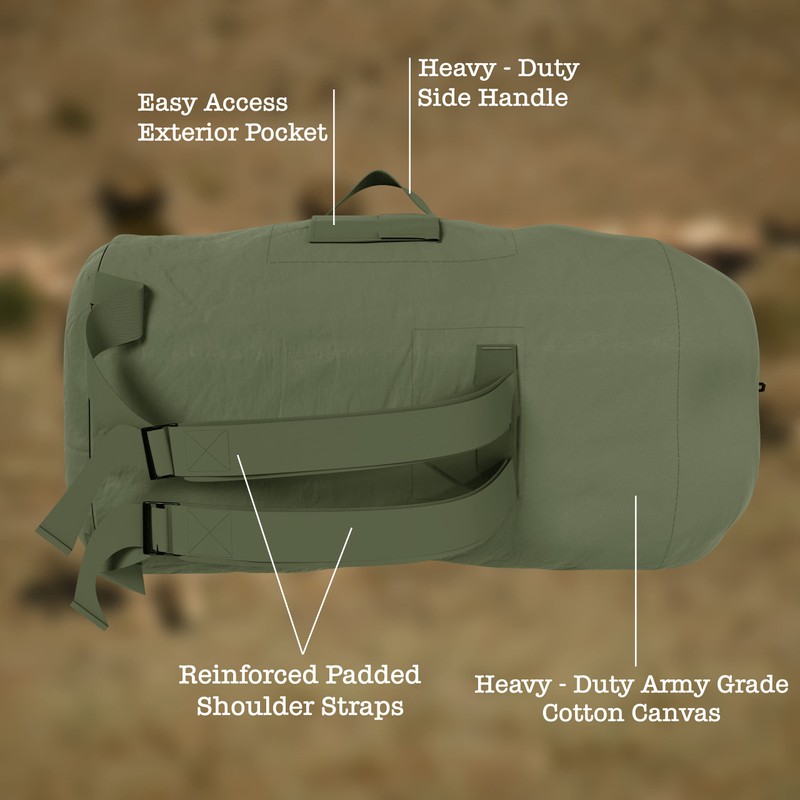 - YOUR OUTDOOR ADVENTURE BAG - Keep your outdoor equipment safe and secure with our canvas duffel bag. This cargo bag has a large opening that will easily fit your camping equipment, tent, tactical gear and accessories. It's better than your regular backpack and small duffel!