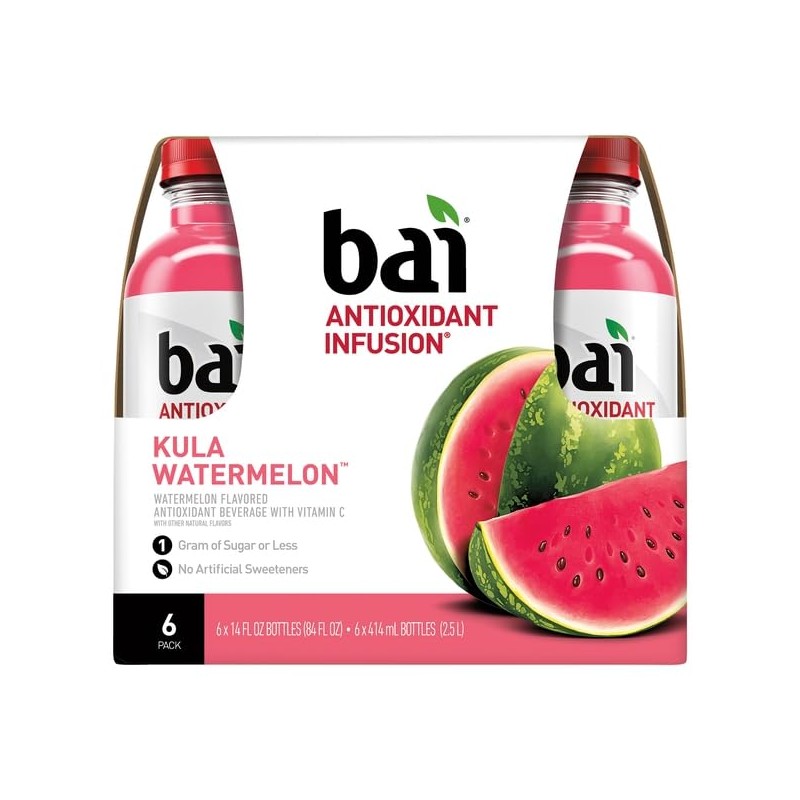 Bai Flavored Water, Kula Watermelon, Antioxidant Infused Drinks, 14 Fluid Ounce Bottle, 6 count