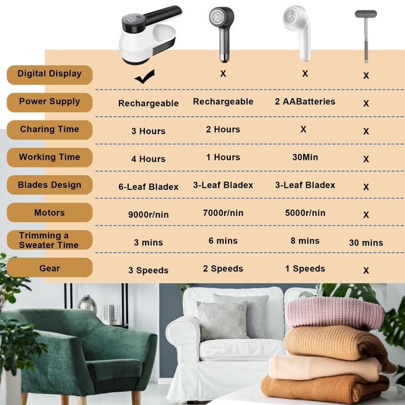 - Efficient and Durable: Our lint remover rechargeable has 3 speed settings (I/ II/III), the maximum speed is close to 9000rpm, comes with 6 stainless steel blades, cleans twice as fast as other fuzz remover