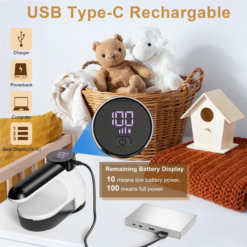 - LED Digital Display: Our fabric shavers for clothes with a large hd led display, you can clearly see the current battery level and speed gear.When the digital display is lower than 10, it means that it needs to be charged; when the digital display is 100, it means that it is fully charged. The digital display can make it more intuitive and convenient for you to use