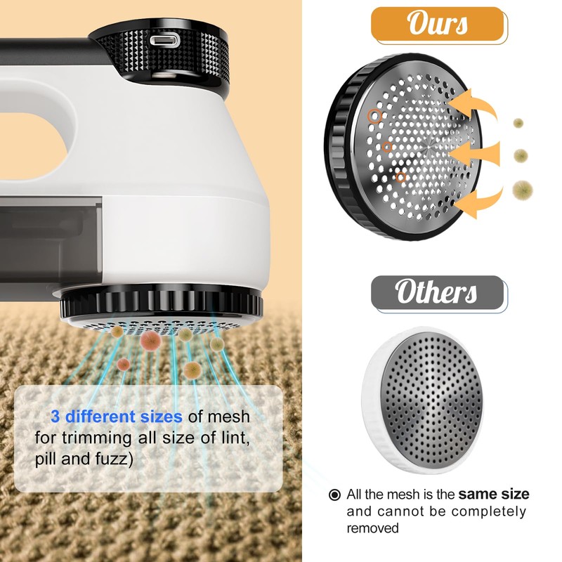 - Wide Range of Use: The mesh cover has 3 sizes of holes, which can quickly clean up hair balls of different sizes. This pill remover for clothes can meet the needs of all fabric surfaces, sweaters, woolen coats, couch, cushions, blankets, socks, fabric furniture and so on