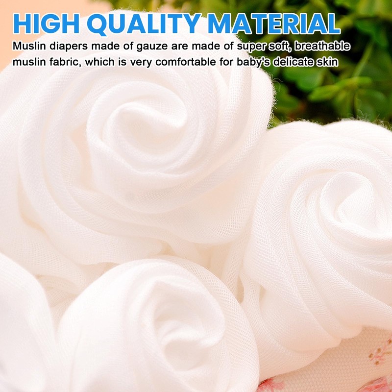 - HIGH QUALITY MATERIAL Gauze muslin nappies is extra soft breathable muslin fabric very comfortable on baby's delicate skin.