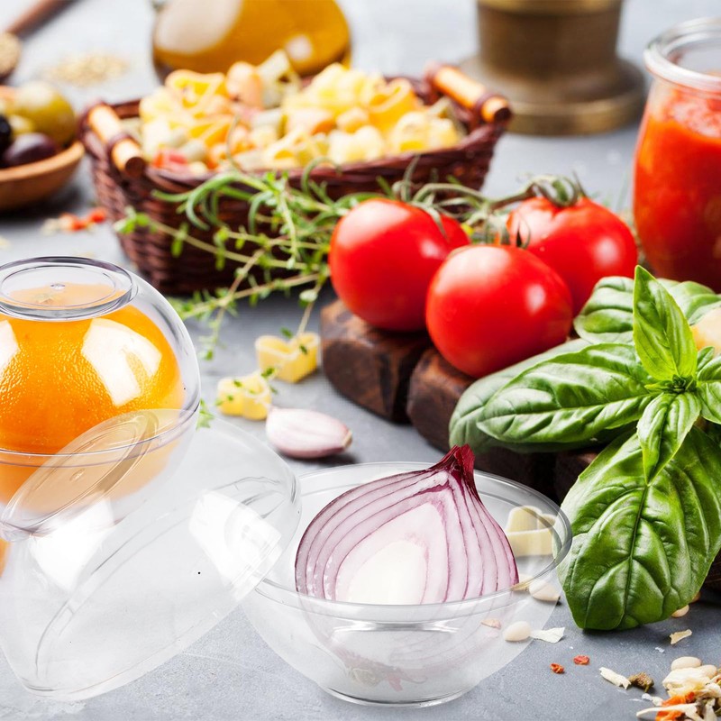 - Box contents: we include 2 x food storage balls set, 2 pieces, BPA-free, onion container. Diameter: 7 cm + 9 cm. Material: AS. In addition to onions, you can also store lemons, herbs, fruit and much more in the food storage containers