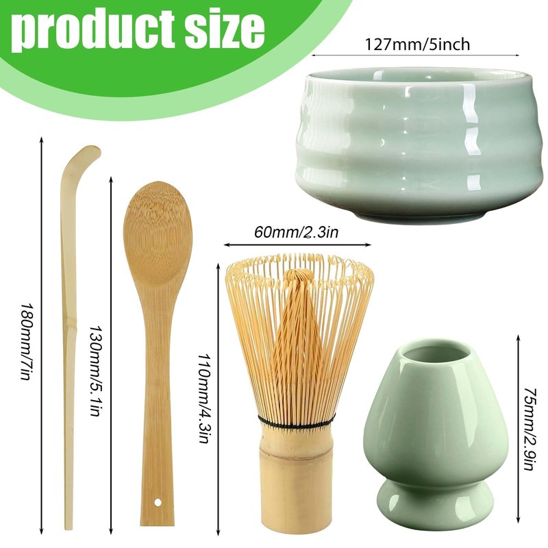 - Matcha Tea Set Includes:Our matcha whisk set is a 5 piece tool set:1 x whisk, 1 x scoop, 1 x teaspoon, 1 x large ceramic bowl and 1 x ceramic whisk holder. This ceramic matcha set is carefully crafted to make matcha a simple and stylish lifestyle, perfect for matcha lovers and beginners
