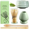 BAIFULAI Set of 5 Matcha Set, Matcha Tea Set, Matcha Whisk Set, Ceramic Matcha Bowl, Teaspoon, Whisk Holder, Japanese Accessories for Matcha Ceremony (Green)