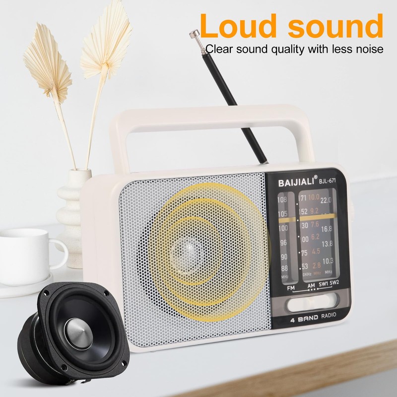 - 【 High Quality 5W Speaker 】: Enjoy rich, room-filling audio from this transistor radio with best reception. The 5W high-fidelity speaker delivers crisp vocals and deep bass, whether you're listening to classic rock on FM or talk shows on AM. Its retro radio design blends vintage charm with modern sound clarity.