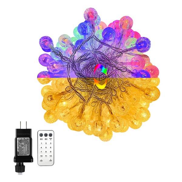 - Globe String Ligths:Plug in 150 LED 65.6ft(49.2ft String Lights,16.4ft Lead Wire) Warm White and Multicolor Globe String Lights with Bulbs-UL Listed,more durable,more energy saving,more environmental.