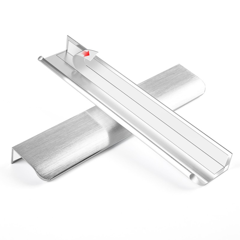 BaiNong 5 Pack 8 inch self Adhesive Cabinet pulls Silvery Finger pulls for cabinets Stick on Handles Concealed Cabinet Handles Edge pulls for cabinets Drawer Pull Seam Drawer Handles Flat pulls