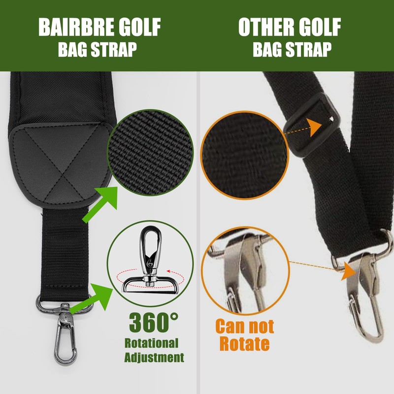 - 【ANTI-SLIP DESIGN】: Adjustable shoulder strap, fully adjustable to fit a wide range of golfer heights. Also, with non-slip design and double buckles for stability, it won't change the length of the shoulder strap on its own due to bag weight changes.