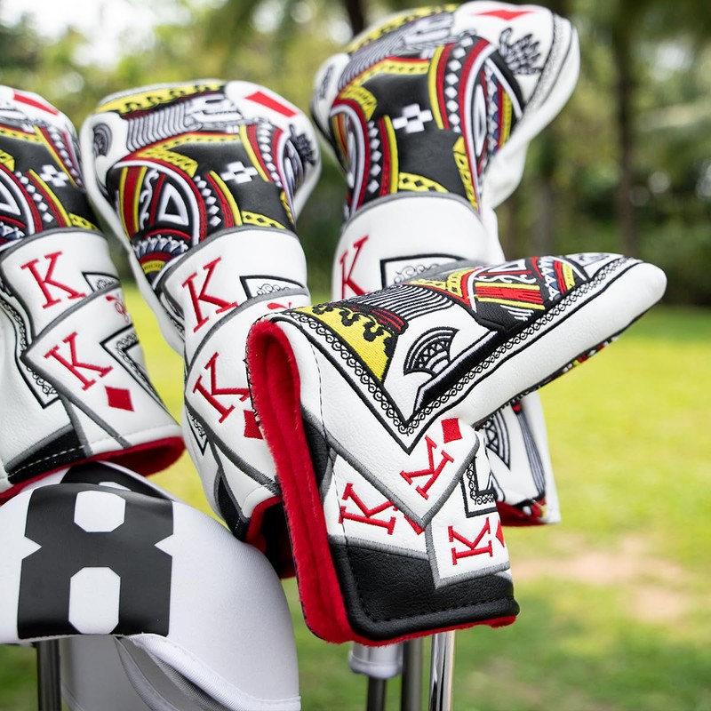 BAIRBRE Golf Head Covers,Poker Diamond King 3 Wood Headcover Golf Driver Cover Fariway Wood Headcover Hybrid Head Covers Blade Putter Cover Mallet Putter Haedcovers Golf Club Covers for Most Brand