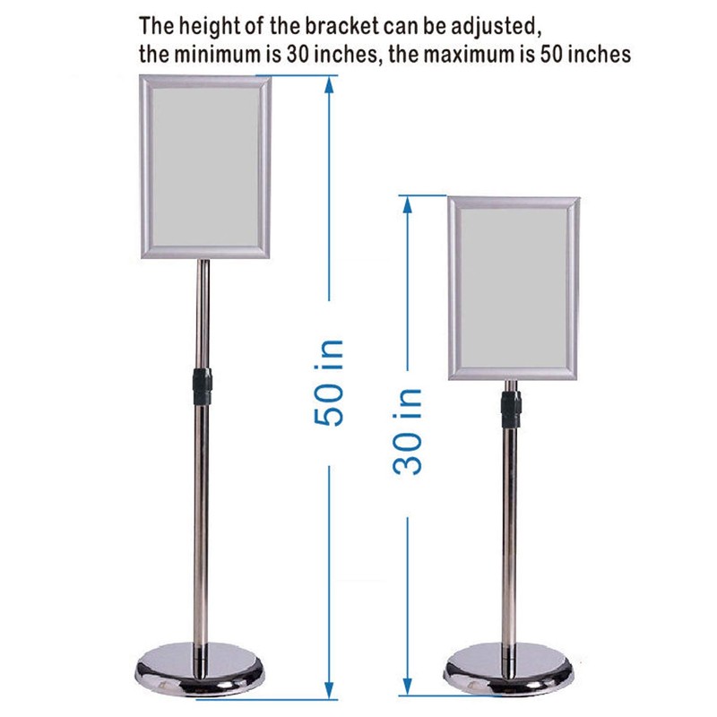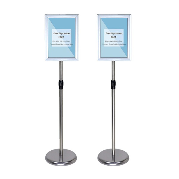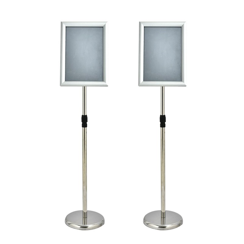 BAISALJI 2 Sets Heavy Duty Stainless Steel Poster Sign holder Stand, Adjustable Height 8.5 x 11 Inch Vertical Horizontal Aluminum Snap Open Frame Floor Billboard Stand.(silver, A4)
