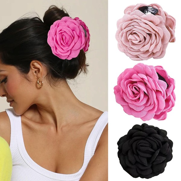 - Large Size and Color: Rose flower claw clip size is 3.5 inches * 3.5 inches, each flower claw is about 28 grams. Each set of hair clips comes in three colors, giving you the flexibility to choose the perfect clip color to match your outfit and create your own hairstyle that will make you look glamorous and elegant