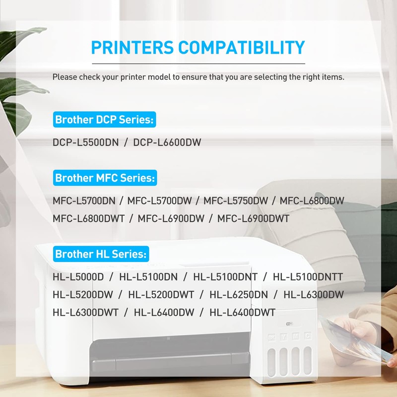 - Compatible printer models: Brother MFC-L 5750dw drum DR3400; Brother DCP-L5500dn, DCP-L5500dn drum, drum DCP-L5500dn; Brother HL-L5200dw drum, toner HL-L5200dw, drum Brother HL-L5200, drum DR 3400 Brother HL. LL5200 dw; HL-L6300dw drum, drum HL-L6300dw, HL-L6300 drum; HL-L5000d drum, Brother HL-L5000d Brother DCP-L DN 5500 DW 6600 HL-L D 5000 5100 DNT DNTT Series 5200 DWT 6250 6300 6400 DWTT MFC-L 5700 5750 6800 6900 Printer