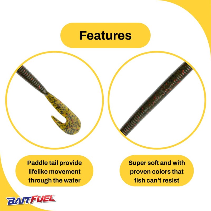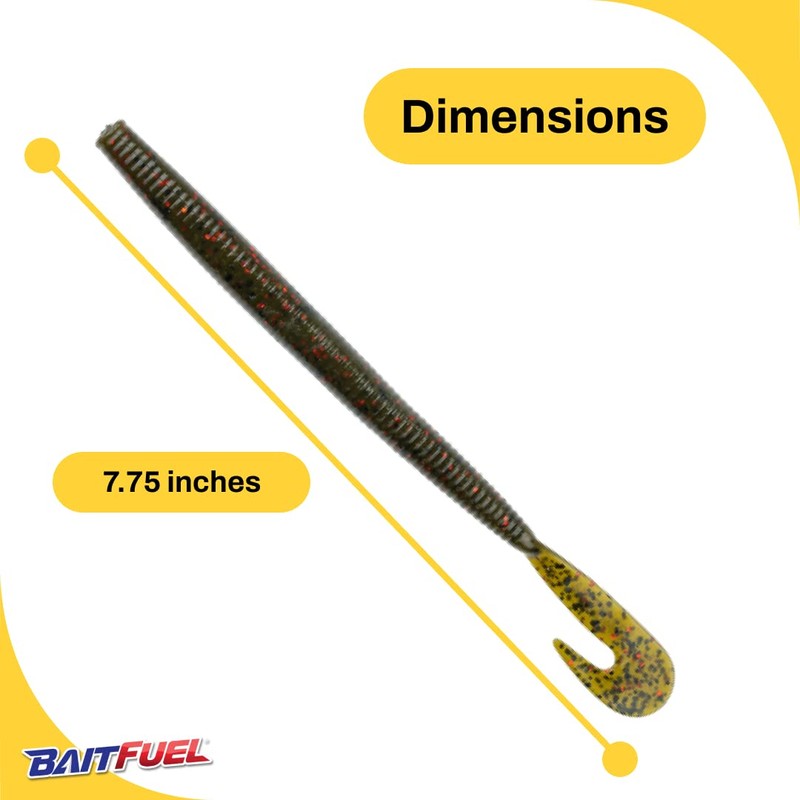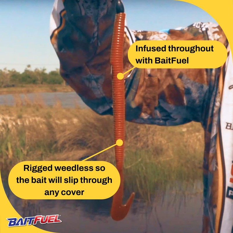 BAITFUEL Mega Bopper Infused with Supercharged X55 Formula Gel: Fish Scent Technology with Powerful Attractants | 7.7-Inch, Green Pumpkin Red (PN: X86530)
