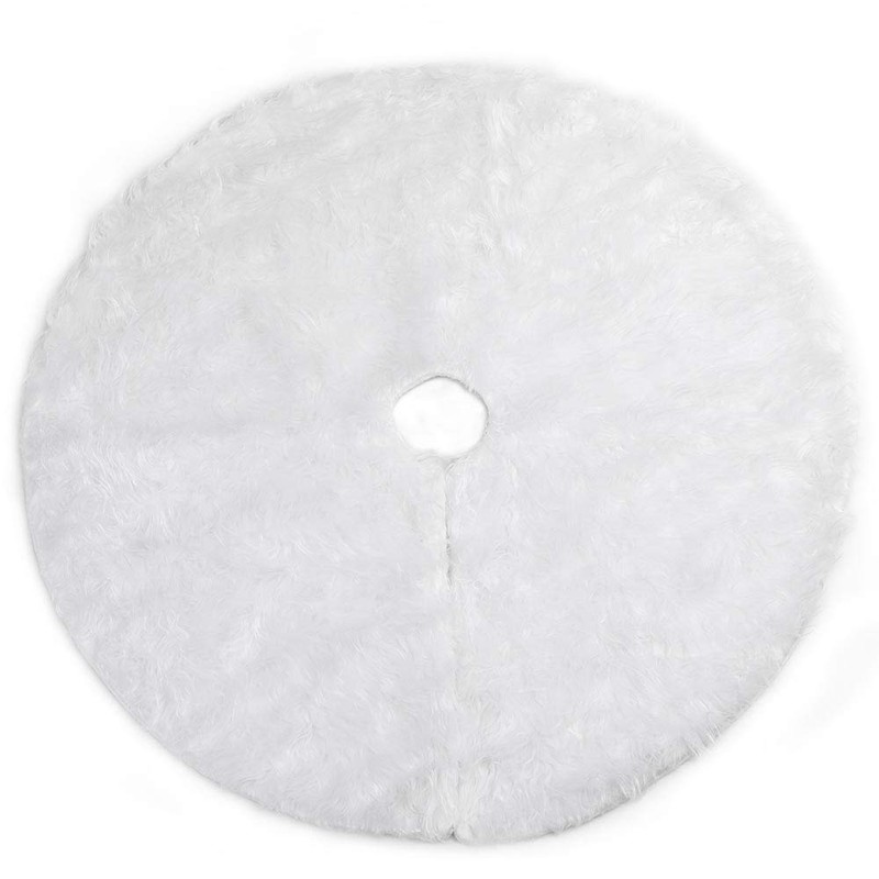 - Made entirely of soft white plush fabric that gives a gorgeous snow effect to the base of your tree.