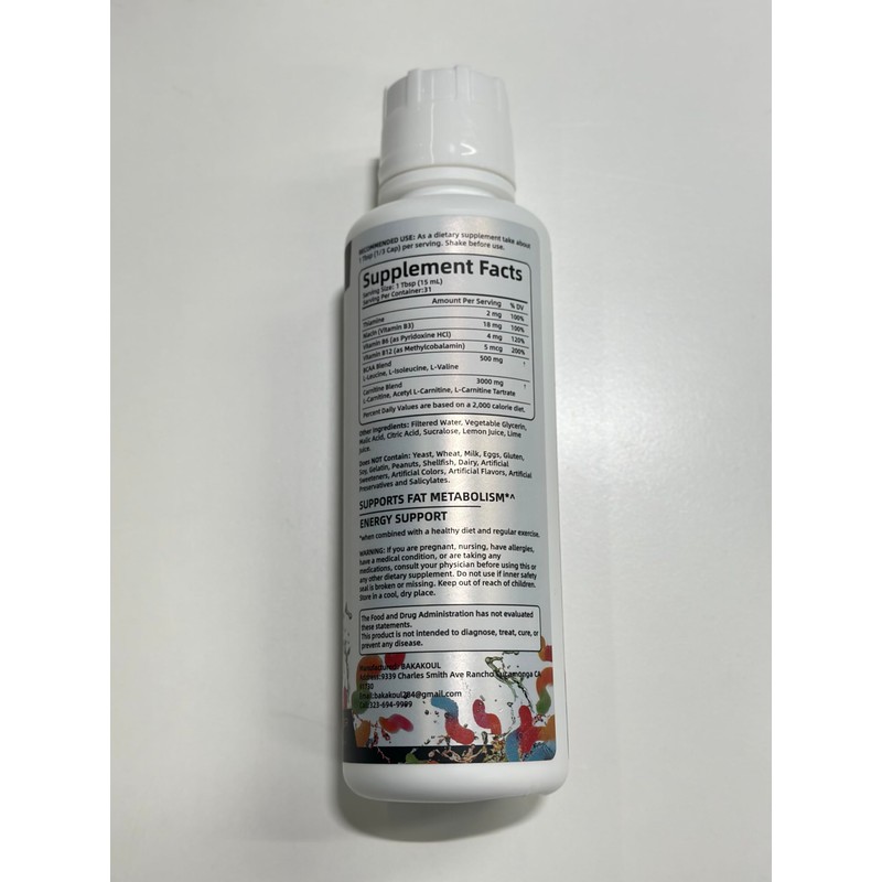 BAKAKOUL L Carnitine Supplement Liquid 3000 mg, with BCAA Sports Supplements,...