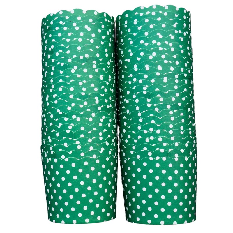 BAKE-IN-CUP 50-Pack Paper Baking Cups, Greaseproof Disposable Cupcake Muffin Liners (Large, Green Polka Dots)