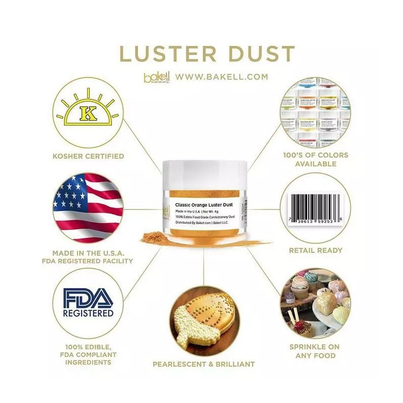 1x Classic Orange Edible Pearl Luster Dust (4g Jar)