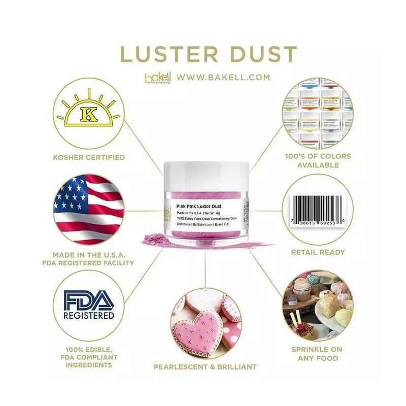1x Pink Pink Edible Pearl Luster Dust (4g Jar)