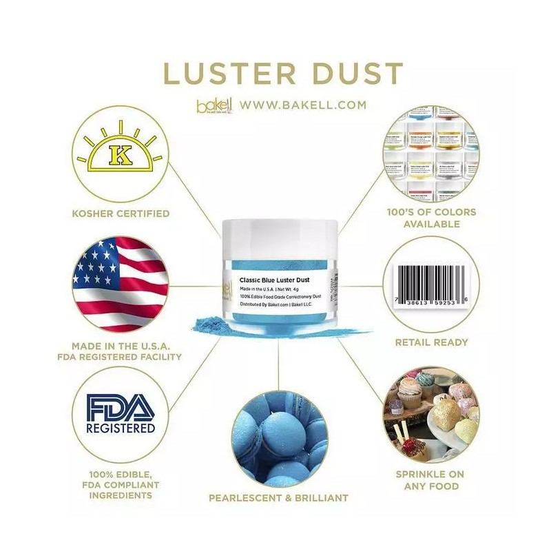 1x Classic Blue Edible Pearl Luster Dust (4g Jar)