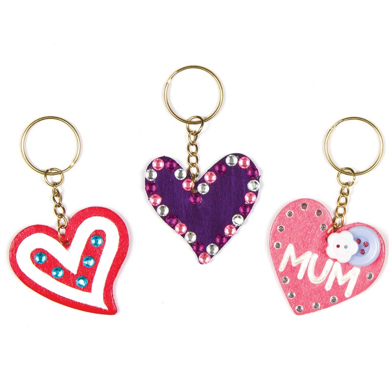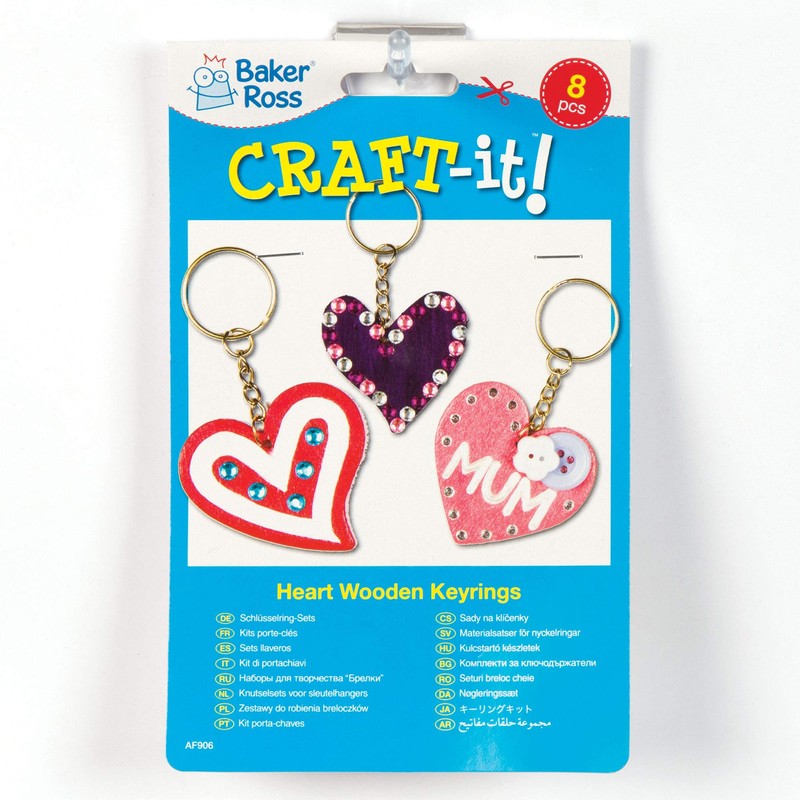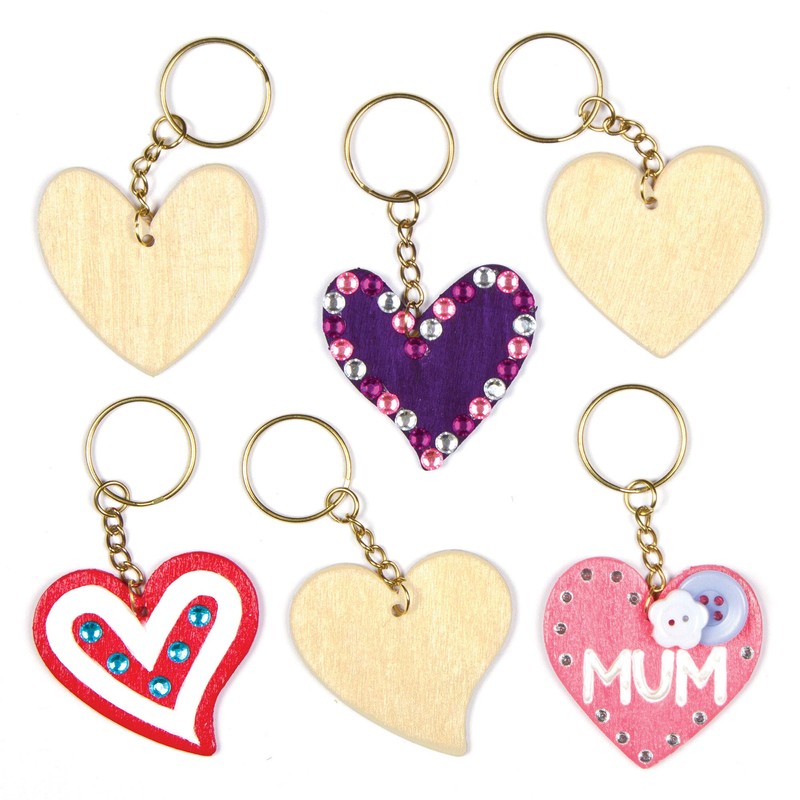 Baker Ross AF906 Heart Wooden Keyrings, Craft Kits For Kids to Paint, Decorate and Use (Pack of 8), 48mm