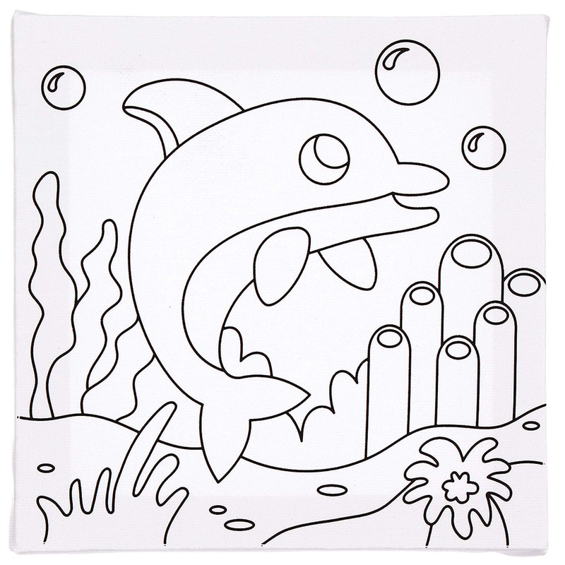 - PACKAGE INCLUDES - 4 assorted pre-printed designs (fish, dolphin, seahorse and turtle). Each of these pictures is stretched on MDF frames and measures 15 x 15 cm.