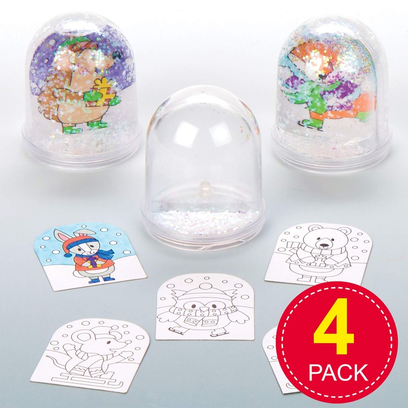 - Package included: 4 x Winter Forest Animals Snow Globe Craft Kit Each set comes with 2 pre-printed card designs and glitter. Available in 8 different designs. Height: 5 cm