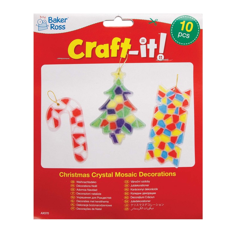 Baker Ross AX570 Pack of 10 Crystal Mosaic Decorations Christmas Acrylic Festive Suncatchers for Creative Arts and Crafts Activities Crafts and Decorating