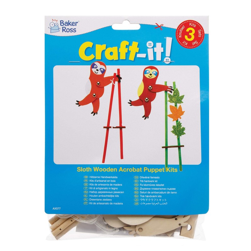 Baker Ross AX577 Sloth Wooden Acrobat Kits - Pack of 3, Make Your Own Puppets...
