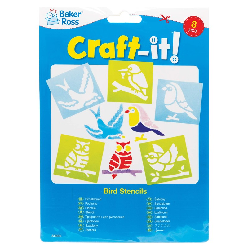 Baker Ross AX906 Bird Stencils - Pack of 8, Washable Plastic Paint Guide Set for Kids Painting Arts and Crafts Activities