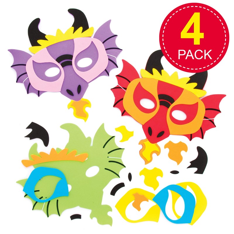 Baker Ross Dragon Foam Mask Kits - Pack of 4, Chinese New Year Craft Kit, Crafts For Kids (AT636)