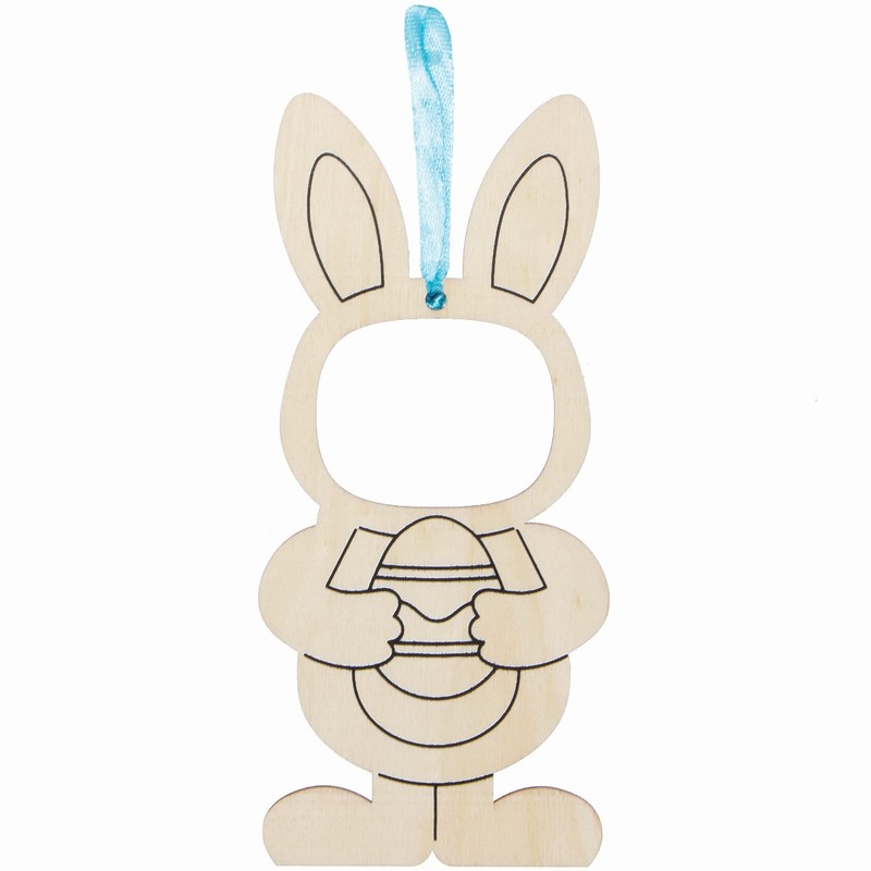 - Package includes: 10 Easter bunny wooden photo frames. Hanging photo frame with ribbon for hanging. Comes in 5 different designs. Size: 16 cm