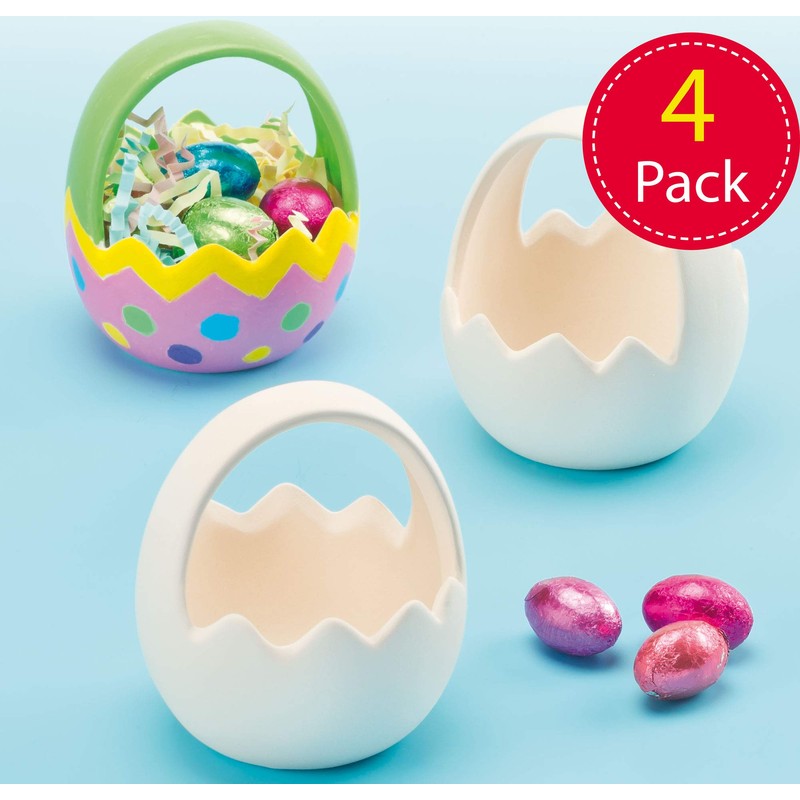 Baker Ross Easter Ceramic Egg Baskets (Pack of 4) For Kids to Decorate Great For Egg Hunting!, EF582