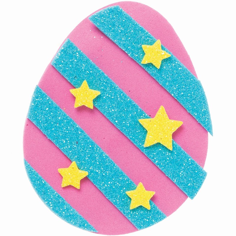 - Package includes: 10 x Easter egg foam rubber magnets for crafts. Each kit includes foam templates for eggs, self-adhesive glitter foam decorations and self-adhesive magnets. In 10 different designs. Egg size: 8 cm x 6 cm