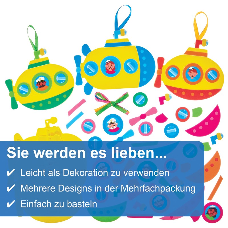- HANGING DECORATION This multipack of submarine decorations is a fun craft activity for creative kids. These complete packages contain all the pieces children need to make their own submarines that are perfect for decorating parties and festivals.