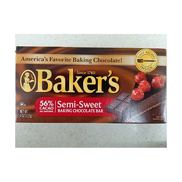 - Baker's 56% Cacao Chocolate Bar Semi-Sweet Baking Since 1780. Premium baking bar. Easy recipes inside.