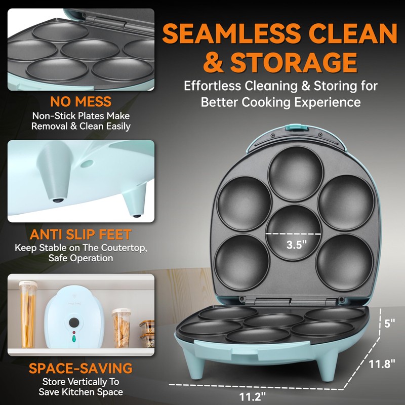 - [EASY TO CLEAN & STORE]: Designed with convenience in mind, this appliance features a non-stick surface for easy cleanup & compact storage solutions, making it a practical choice for any home.