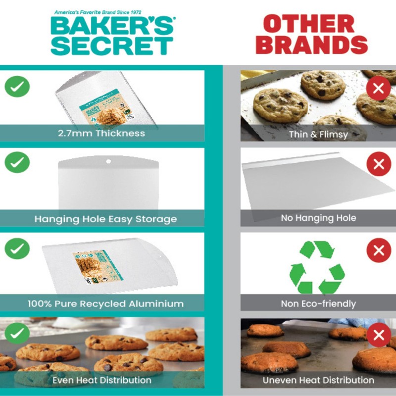 - ✔️Trusted Brand: Baker's Secret has been a household name in baking for decades, known for their reliable and high-quality products. With their extensive experience in the industry, you can trust that this cookie sheet delivers outstanding performance and meets the demanding standards of professional bakers. Elevate your baking game with Baker's Secret's trusted expertise