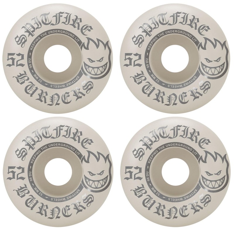 - WHEELS: The newly developed burners offer a new tier in Spitfires line. Using a unique new urethane, the burners provide an option for any skater looking for a high-quality wheel that’s great to ride and doesn’t sacrifice performance for the price. Poured in the Bighead shape, 99A durometer hardness.