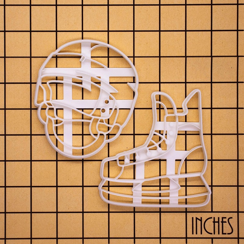 BAKERLOGY Sat of 2 Ice Hockey Cookie Cutters (Shapes: Skate, Helmet) - Detailed Cookie Cutter Design for Baking and Crafting, Ideal for Fondant, Dough, Clay