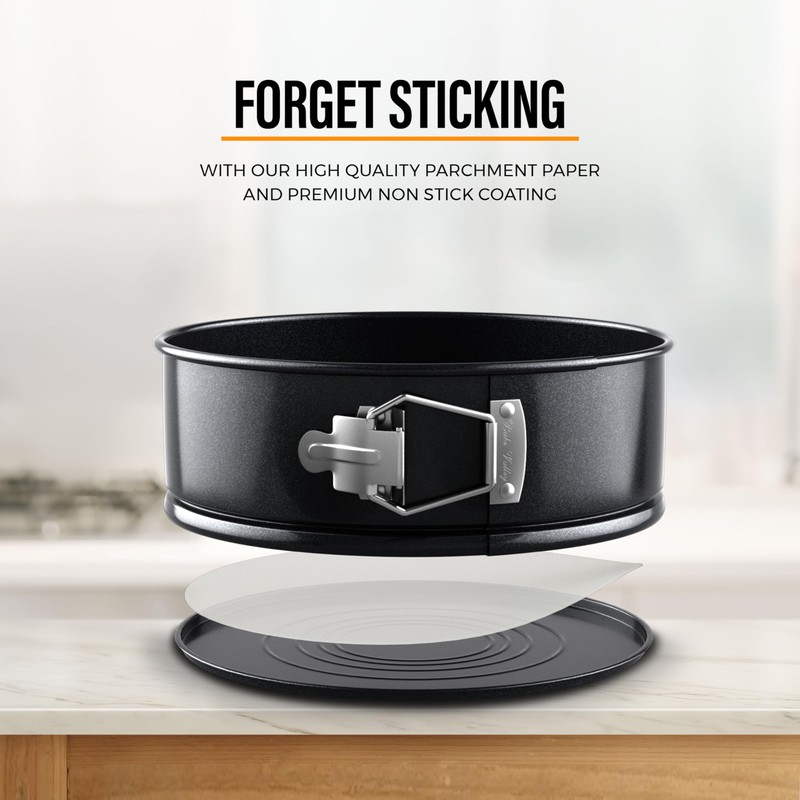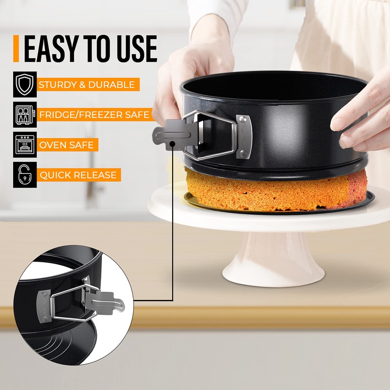 - Springform Buckle: These round cake tins have a loose bottom that makes cleanup a breeze. The easy-release buckle ensures that your cake comes out flawless every time without ruining your masterpiece. Plus, it's dishwasher-safe for your comfort