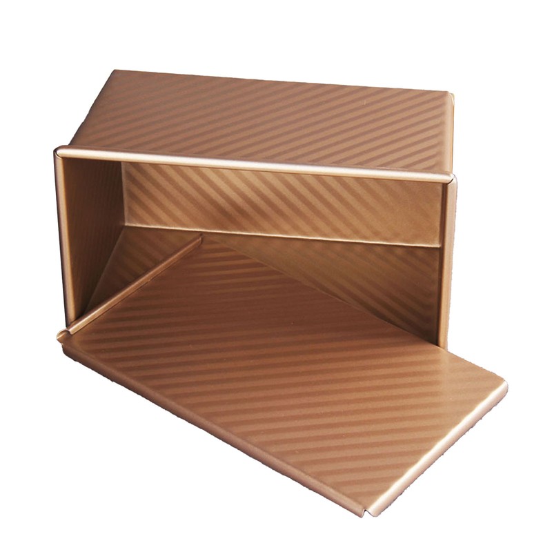 Bakeware Loaf Pan with Cover Nonstick Quick Release Coating Carbon Steel Ripple Rectangle Toast Box Bread Pan Gold